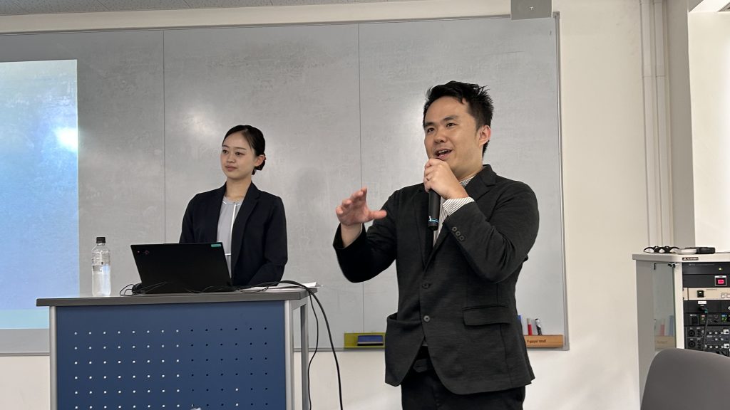 On July 16, 2025, the Center for Research in Business Administration and the GSM alumni networking WG hosted an international business and career seminar for international students. Ms. Suzuka Arai and Mr. Tatsuya Tagami of Mitsui O.S.K Lines (MOL), visited us and introduced “Career Voyage,” their new international career services for large Japanese companies. The event was attended by 58 students from various backgrounds, including China, Hong Kong, India, Indonesia, Italy, Kazakhstan, Myanmar, Nepal, Pakistan, Peru, South Korea, Taiwan, the United States, and Japan.